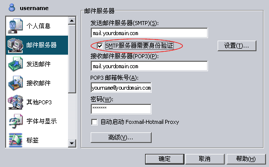 8. 在右邊“SMTP 服務(wù)器需要身份驗(yàn)證”欄前的空格打勾。